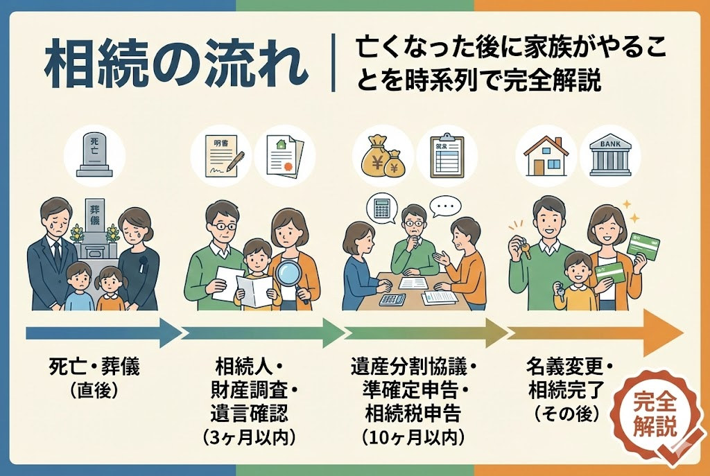 相続の流れ|亡くなった後に家族がやることを時系列で完全解説